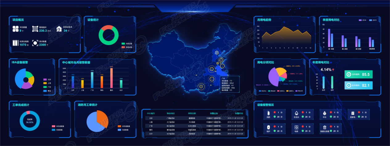 隨著信息技術(shù)、物聯(lián)網(wǎng)技術(shù)的不斷發(fā)展,對(duì)物業(yè)管理也提出了更高的要求,而設(shè)備設(shè)施管理又是物業(yè)管理的基礎(chǔ)核心業(yè)務(wù),利用新一代技術(shù)建設(shè)智慧園區(qū)管理平臺(tái),對(duì)設(shè)備設(shè)施進(jìn)行精細(xì)化管理,對(duì)重要的設(shè)備進(jìn)行預(yù)防性維護(hù),對(duì)故障及時(shí)預(yù)警,延長(zhǎng)設(shè)備的使用壽命,提高設(shè)備完好率,降低故障率,從而降低物業(yè)整體運(yùn)營(yíng)成本,使物業(yè)設(shè)備運(yùn)行透明化,使物業(yè)重要設(shè)備價(jià)值得以量化。通過(guò)搭建智慧園區(qū)管理平臺(tái),園區(qū)管理人員可以實(shí)時(shí)掌握產(chǎn)業(yè)經(jīng)營(yíng)情況,比如:園區(qū)能耗分析、園區(qū)運(yùn)營(yíng)分析、園區(qū)產(chǎn)業(yè)結(jié)構(gòu)、園區(qū)產(chǎn)業(yè)布局、園區(qū)服務(wù)情況……等等,能夠根據(jù)掌握的情況制定園區(qū)的發(fā)展戰(zhàn)略;并且通過(guò)對(duì)人流量分析、安防消防管理、基礎(chǔ)設(shè)施管理和監(jiān)控管理,確保園區(qū)正常和安全運(yùn)營(yíng)。