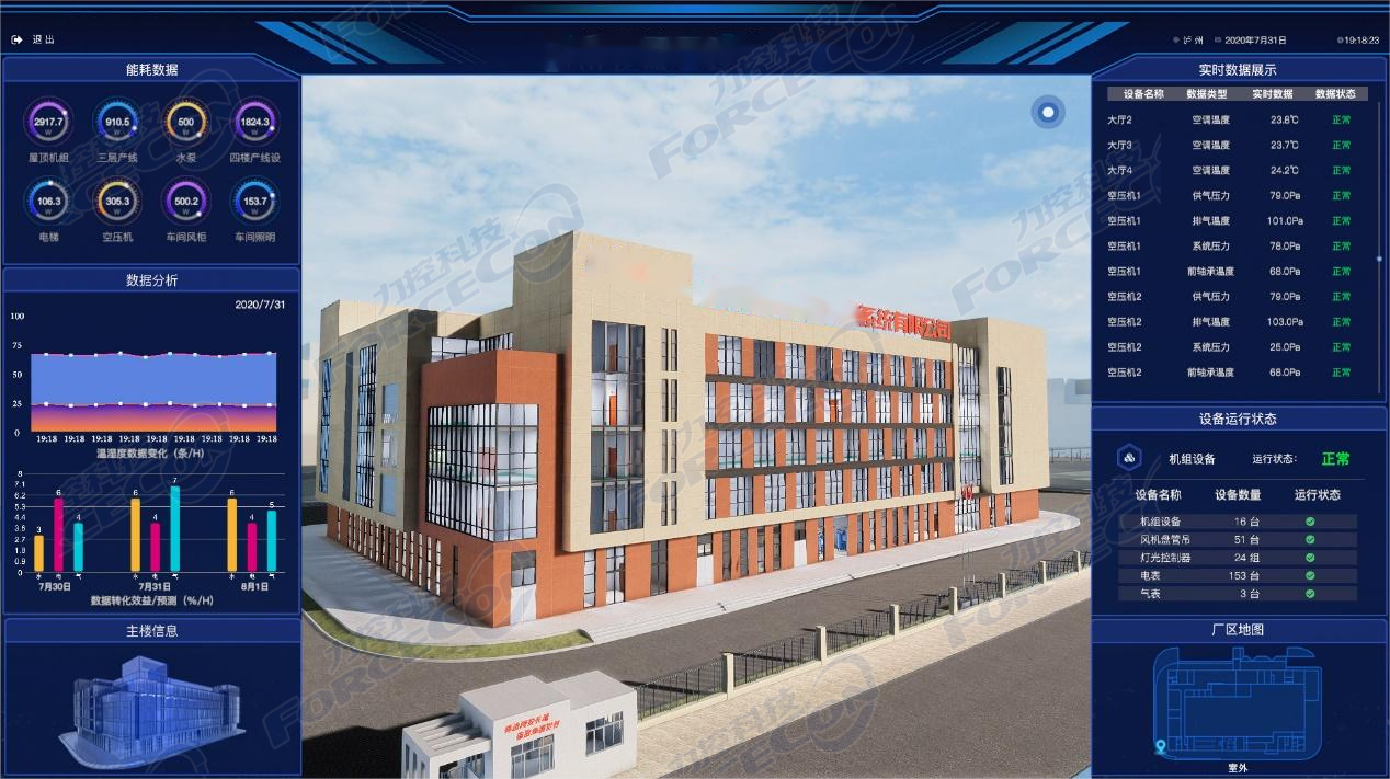 該項目中廠務(wù)監(jiān)控管理系統(tǒng)以高效的數(shù)據(jù)采集為基礎(chǔ)、集中式實時監(jiān)控管理為目標(biāo),數(shù)字孿生可視化平臺為呈現(xiàn),打造國內(nèi)一流的廠務(wù)監(jiān)控信息系統(tǒng)。本廠務(wù)監(jiān)控管理系統(tǒng)不僅整合了高低壓配電、空壓系統(tǒng)、空調(diào)系統(tǒng)、水系統(tǒng)、消防系統(tǒng)、門禁系統(tǒng)、視頻系統(tǒng)、燈光系統(tǒng)、電梯系統(tǒng)等基礎(chǔ)設(shè)置,還實時跟蹤設(shè)備產(chǎn)線生產(chǎn)到封裝打包等一體化過程,以完善的工業(yè)安全基礎(chǔ)網(wǎng)絡(luò)環(huán)境保障系統(tǒng)建設(shè)應(yīng)用,以健全的數(shù)字化基礎(chǔ)建設(shè)消除信息孤島,并以全面覆蓋的孿生監(jiān)控管理打開工廠運(yùn)營的黑匣,以全生命周期的設(shè)備管理方式服務(wù)于設(shè)備高效運(yùn)轉(zhuǎn),為企業(yè)節(jié)能減排提供支撐。