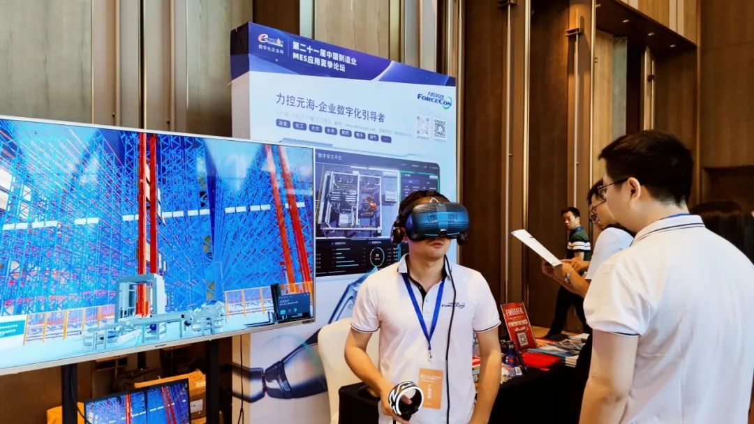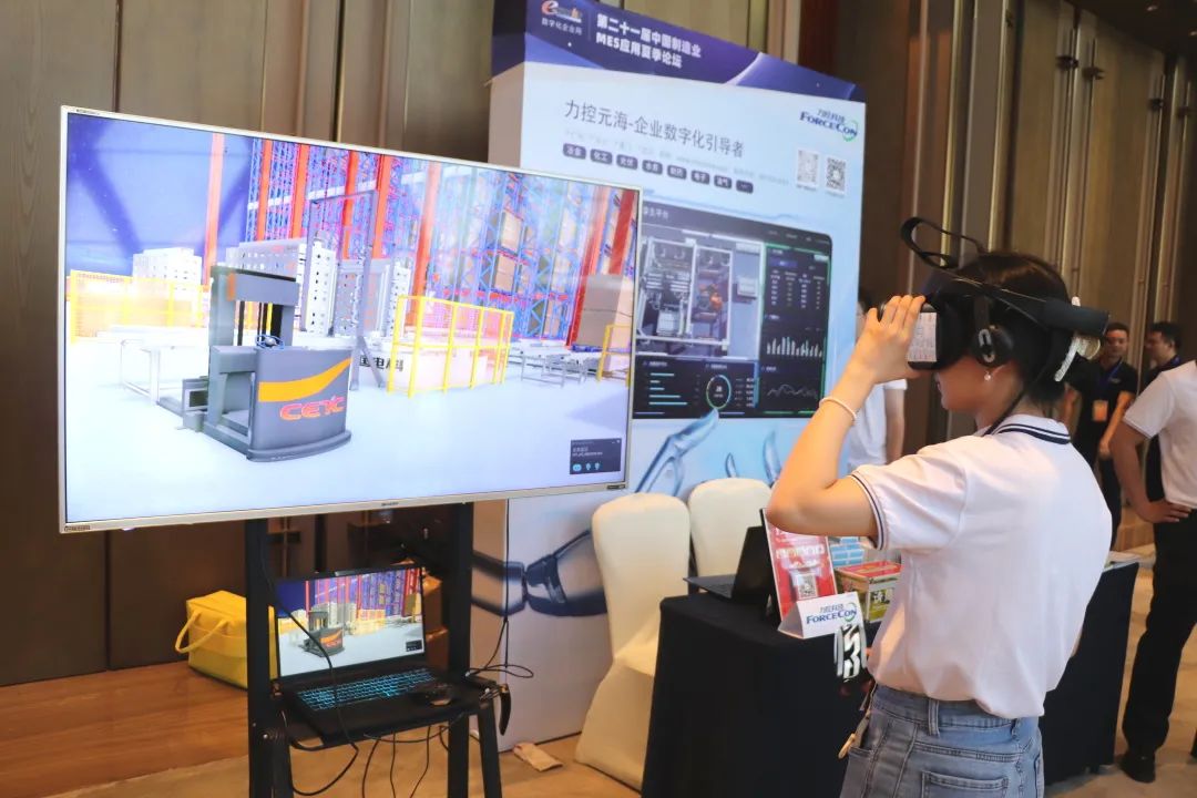 驚喜的是,本次論壇力控元海將數(shù)字孿生與VR技術(shù)相融合,設(shè)置了VR展臺。觀眾戴上VR頭盔,就可以通過1:1建模的三維場景“看到”現(xiàn)場的真實情況,還能進行交互查看設(shè)備運轉(zhuǎn)情況,如同在現(xiàn)場巡檢一般。