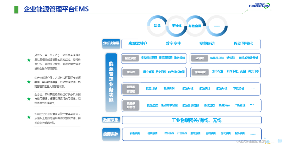 如EMS(能源管理系統(tǒng))能夠?yàn)榻ㄖ?、工業(yè)園區(qū)、高耗能企業(yè)等提供能源統(tǒng)計(jì)及分析的綜合信息化解決方案,使得企業(yè)動(dòng)態(tài)管理更加便捷有效,降低風(fēng)險(xiǎn),降本增效。